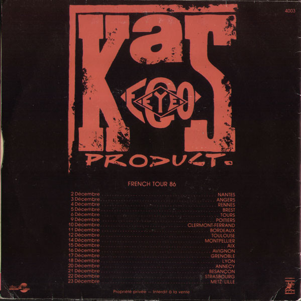 French Promo 45 to support their French Tour in 1986 / Formed in 1980, the duo consists of Spatsz on electronics and rhythm machines with Mona Soyoc on guitar, vocals and piano. Spatsz worked at a psychiatric hospital previously while Mona worked with a jazz band before meeting Spatsz.