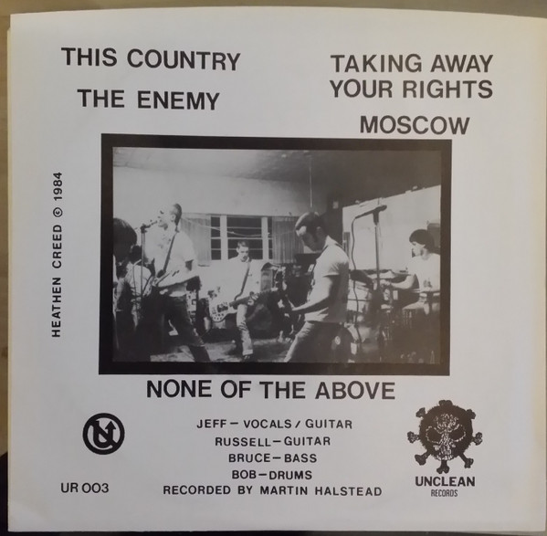 Outstanding condition. As New !! / Third version of the sleeve. This sleeve is printed on coated paper (somewhat glossy) and has a different back design than the first edition with typeset titles on a white background and features the 'virus' Unclean logo. The opening of the sleeve is cut rounded at top. Blue & white insert with typed lyrics. is in perfect shape as well.