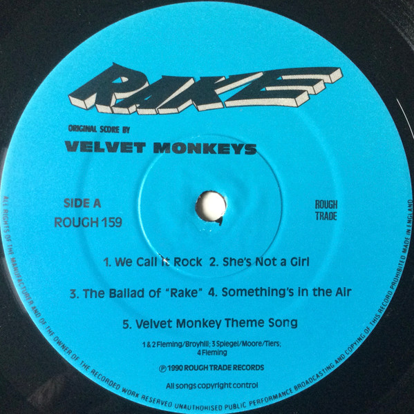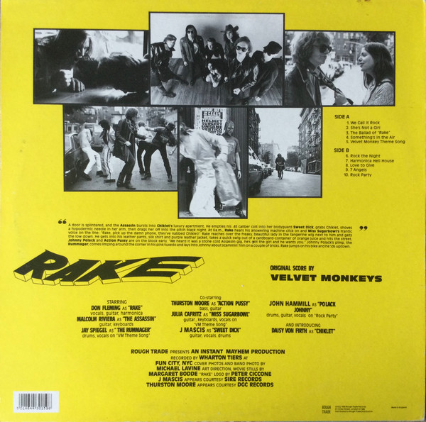 Original UK pressing. Still comes with the scarce unpeeled Featuring J. Mascis Thurston Moore Don Fleming sticker on front cover /Velvet Monkeys was one of the bands led by legendary producer Don Fleming (Sonic Youth, Hole, Dinosaur Jr., and others), which existed from 1980 to 1990 and has enjoyed cult status ever since. Rake is the band's last work (from 1990) and is intended as the soundtrack to a film that, of course, doesn't exist.