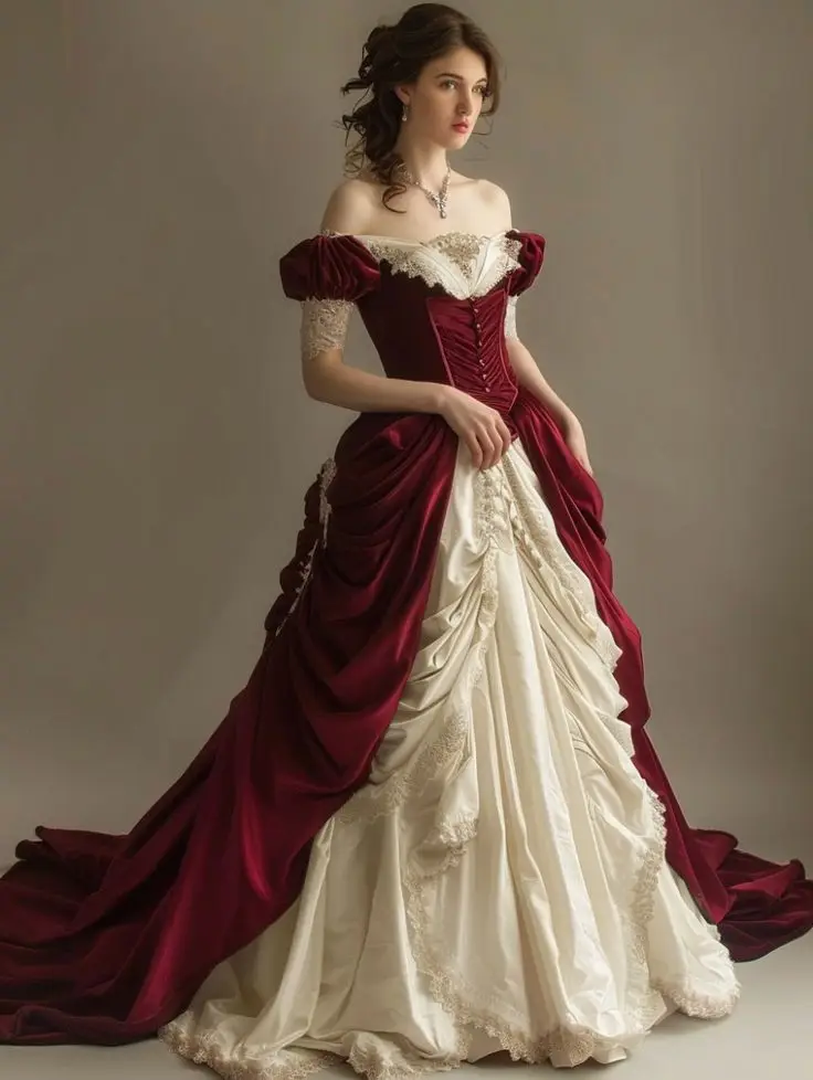 Medieval Red White Prom Dress Off Shoulder Layered Ruffles Vintage Evening Gowns