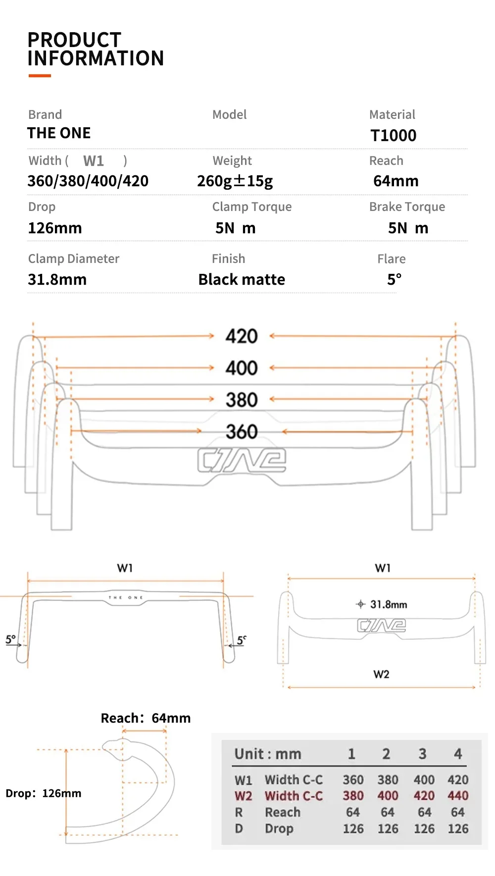 Handlebar Width:380/400/420/440 MM