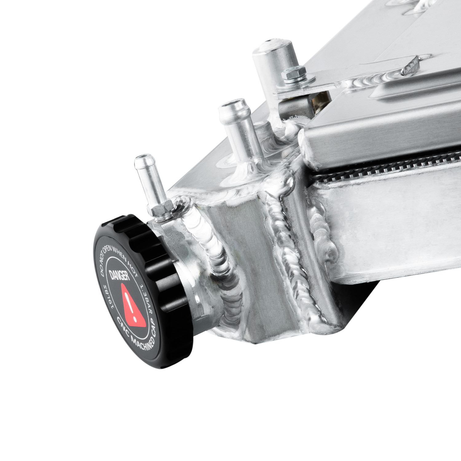 This AA5052 Aluminum Radiator is designed to provide maximum cooling efficiency to prevent premature engine failure. Its light-weight, and high-heat transferring aluminum features a tube and fin design that, dramatically increases surface area that enables the heat to dissipate more efficiently. This AA5052 Aluminum Radiator is at least 30%-45% more efficient than stock ones. Most importantly, it has a much higher capacity for coolant than stock ones, which means that your cooling system will be more efficient and will be more resistant to temperature surges in racing applications.