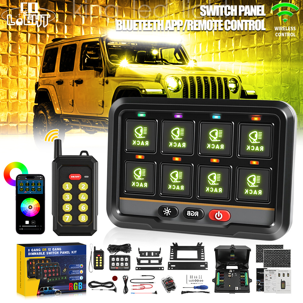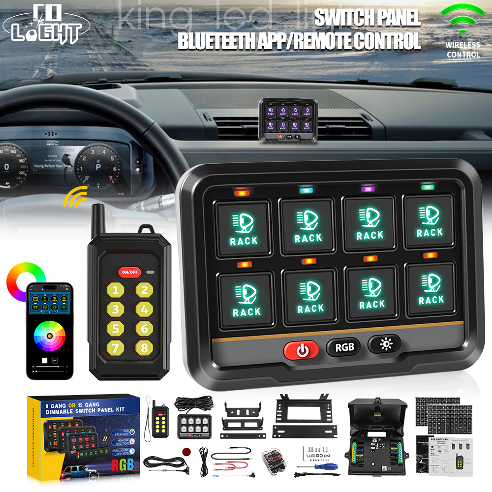 Colight 8 Gang Switch Panel, Blueteeth/Remote Controller, Adjustable RGB Colors Brightness, Multifunction Toggle Momentary Strobe, Auxiliary Circuit Control Box for Car Off-Road Truck SUV RV Yaht 4x4 SXS 4WD Cage Camper Trailer Van Boat