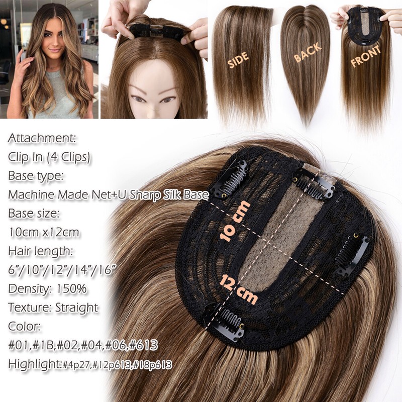 AAA Remy 100% Real Human Hair Clip In Top Women Toupee Topper Wiglet Big 13*15cm