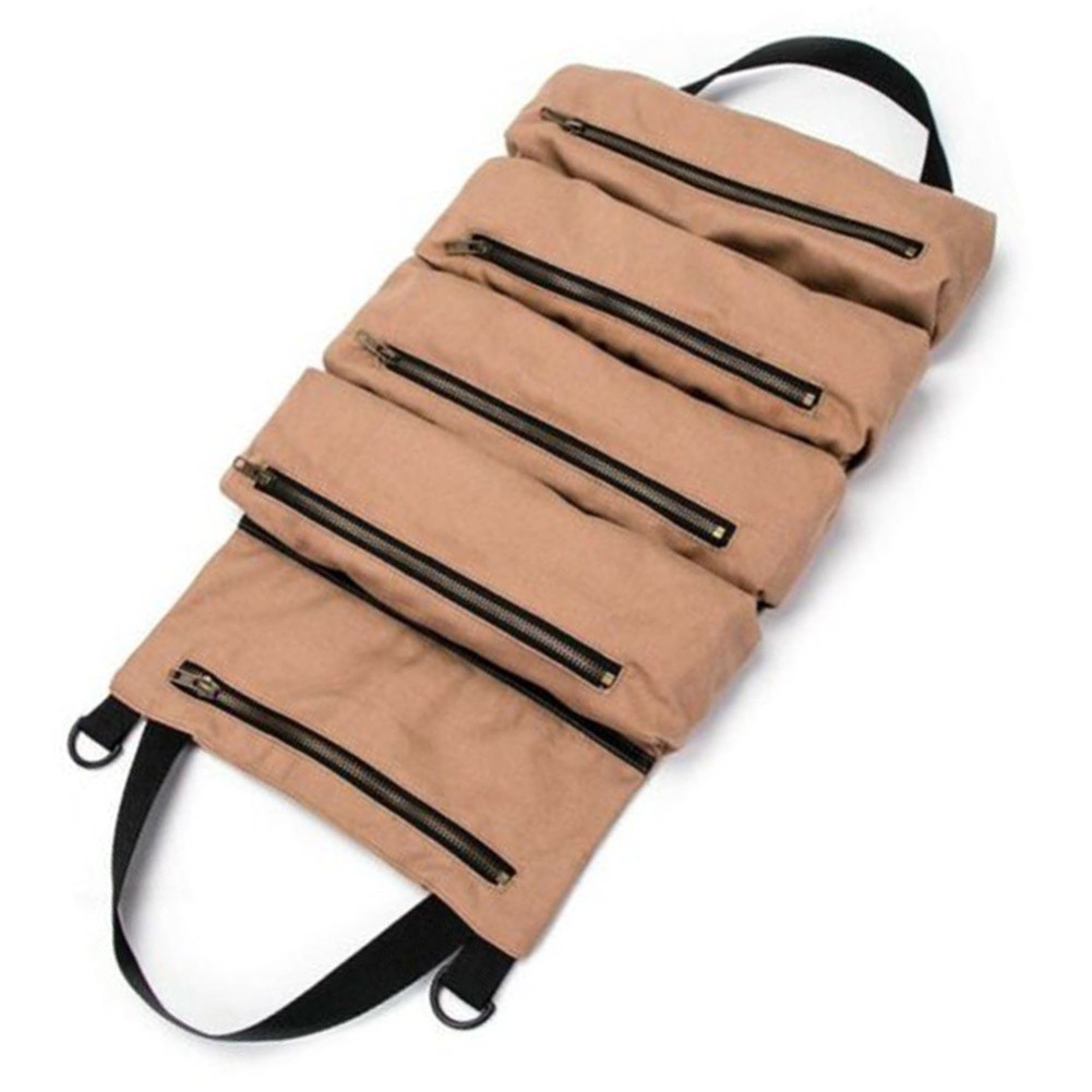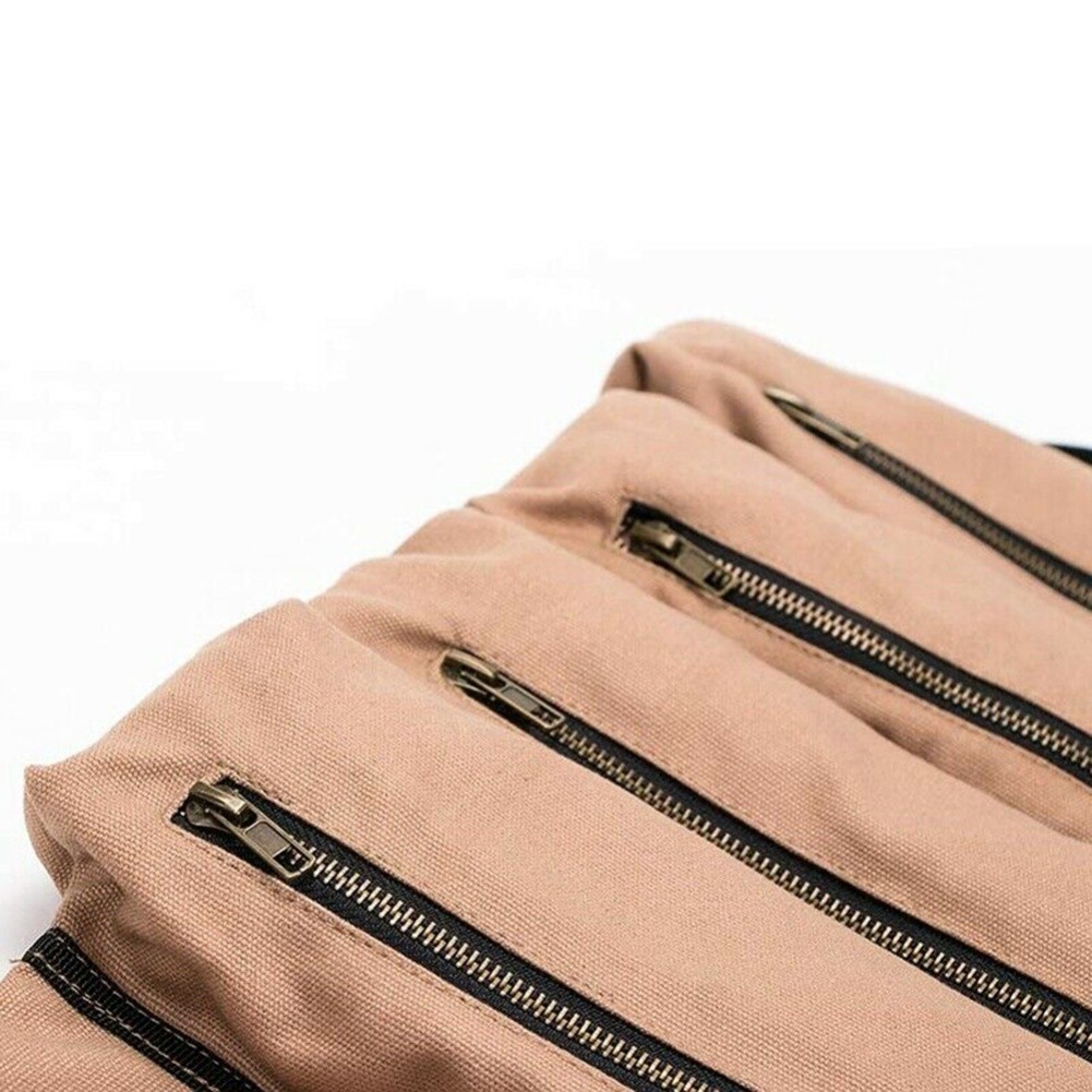 Roll Up Canvas Tool Bag with Zipper and Woven Handles for Workshop and Home Use