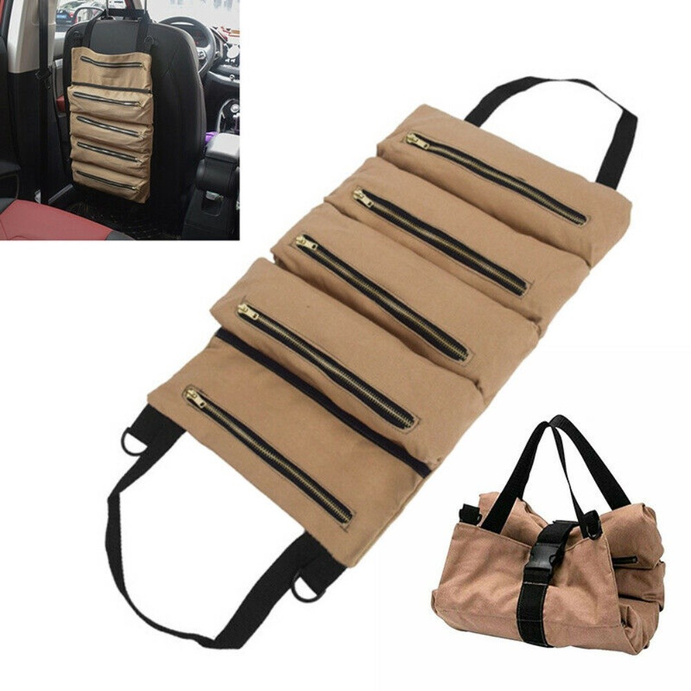 *The tool bag can be rolled up for compact storage, taking up minimal space while keeping your tools neatly organized and easily accessible when needed, even allowing for hanging storage in your vehicle.