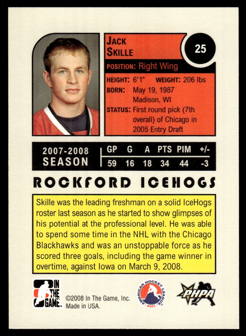 | 2008-09 In The Game Heroes and Prospects Jack Skille Rockford IceHogs #25 |