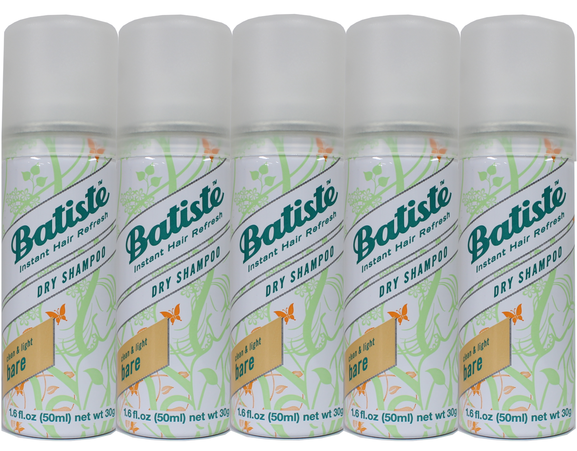 Pack of 5 Batiste Instant Hair Refresh Dry Shampoo Clean Bare Travel Size 1.6 oz