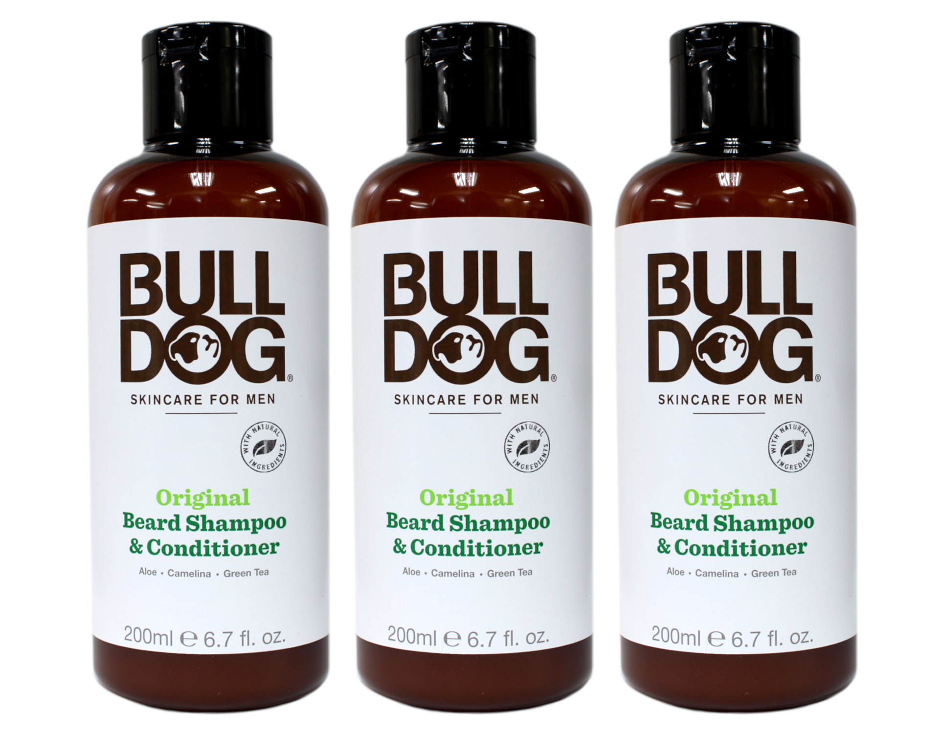 3 Pack Bull Dog Original Beard Shampoo and Conditioner Aloe Camelina 6.7 fl oz