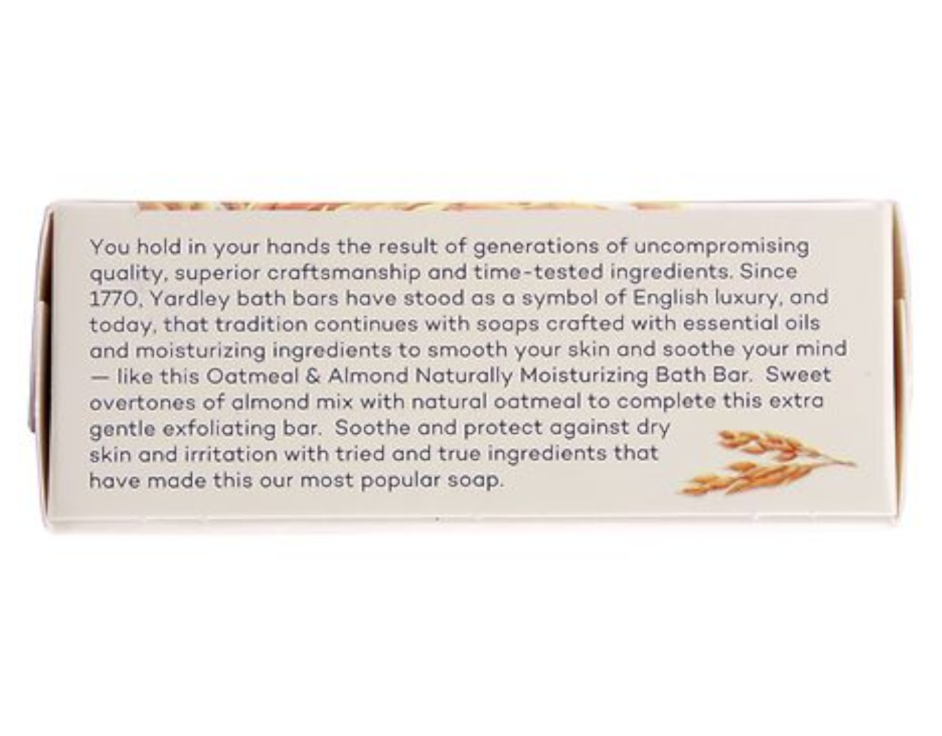 Gift your body and mind with the gentle escape of Yardley’s Moisturizing Oatmeal & Almond Bath Bar. The subtle hint of sweet almonds lends itself to a truly refreshing experience that leaves you feeling clean, gently exfoliated and moisturized. Yardley’s Oatmeal & Almond Bath Bar begins with a composition of crushed almond and sun warmed oatmeal. A graciously fragrant blend of warm vanilla bean and lemon zest compliment these notes. Smooth skin and soothed minds. At Yardley, we know that sometimes Me Time can call for some serious TLC. The time and ingredients you choose to work on protecting and defending your skin are precious as they allow you to look and feel your best.