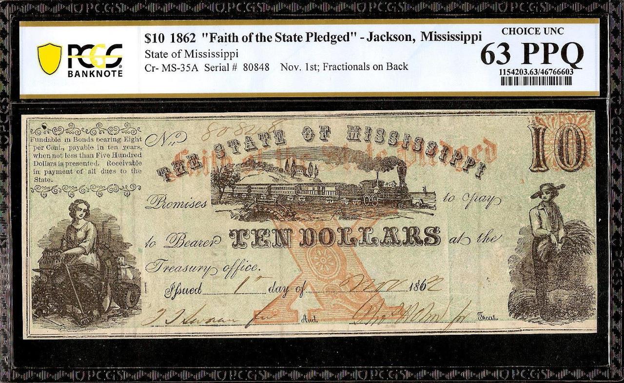 One Beautiful 1862 $10 Jackson Mississippi Note