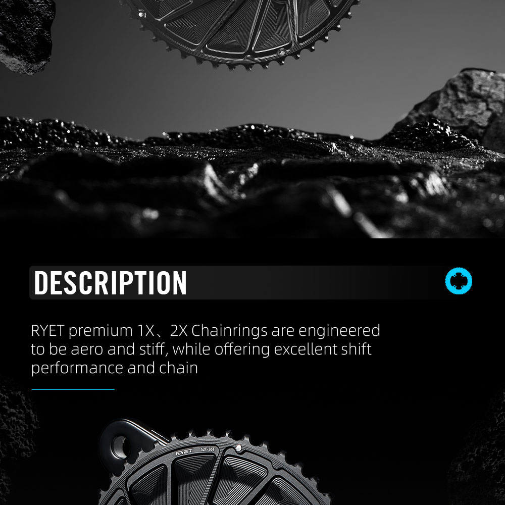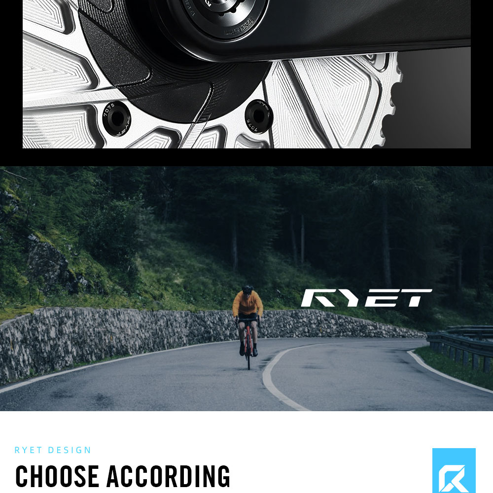 RYET Aero Road Bike Chainring 50-34T 52-36T 54-40T 56-42T Bicycle Chainwheel Compatible with 1&2x11/12 Speed For Road & TT Bikes Cycling Parts