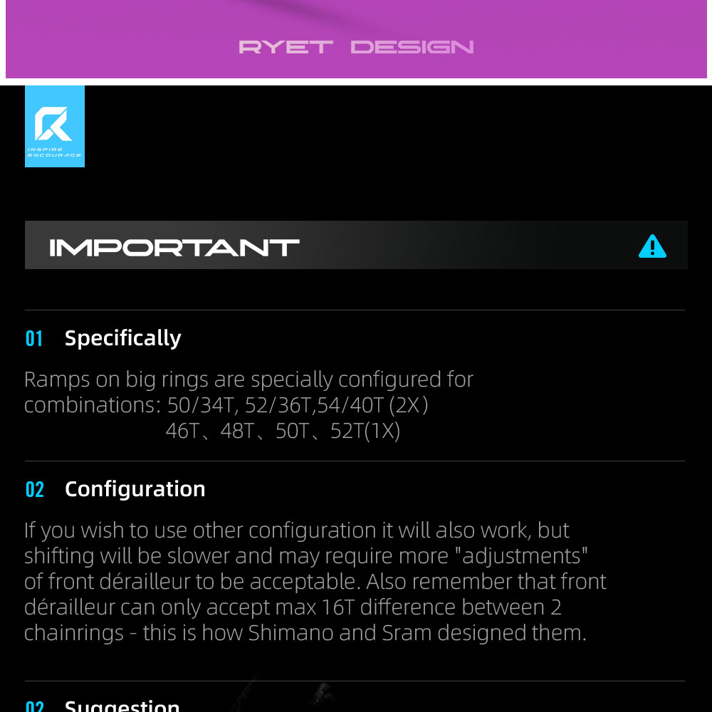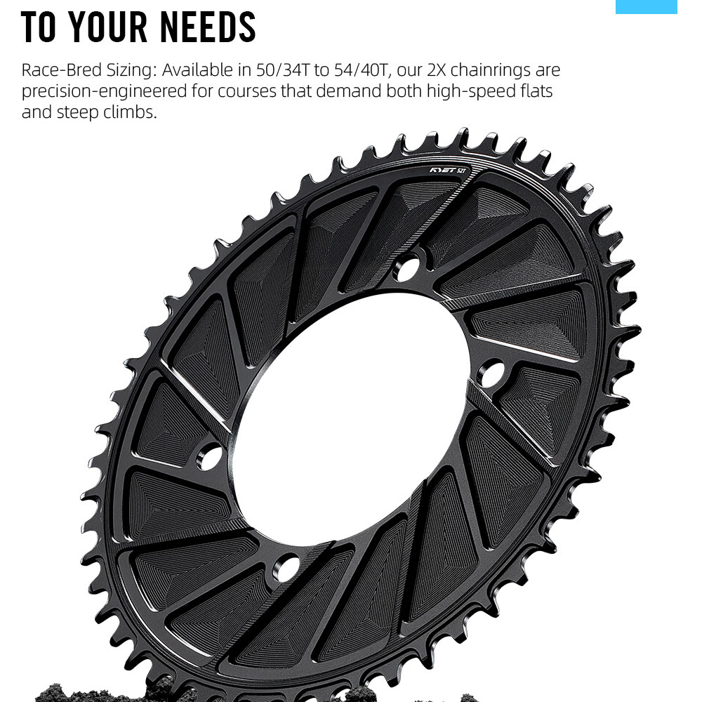 2X Chainrings: 50-34T、52-36T、54-40T、56-42T