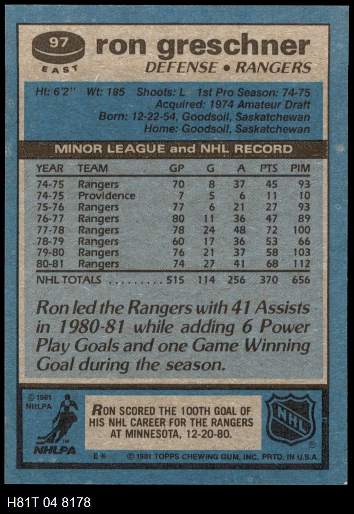 1981-82 Topps New York Rangers Team Set Rangers-Hockey 8 - NM/MT 5850016