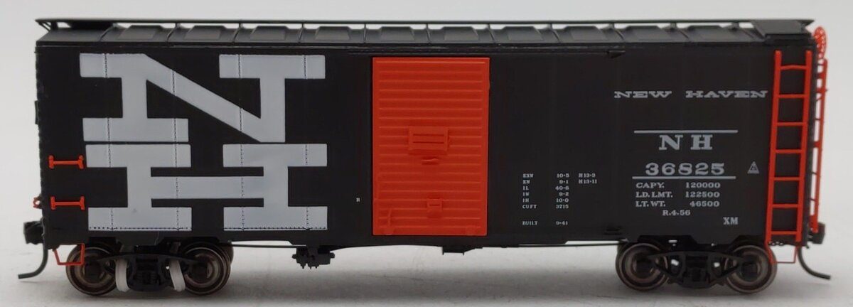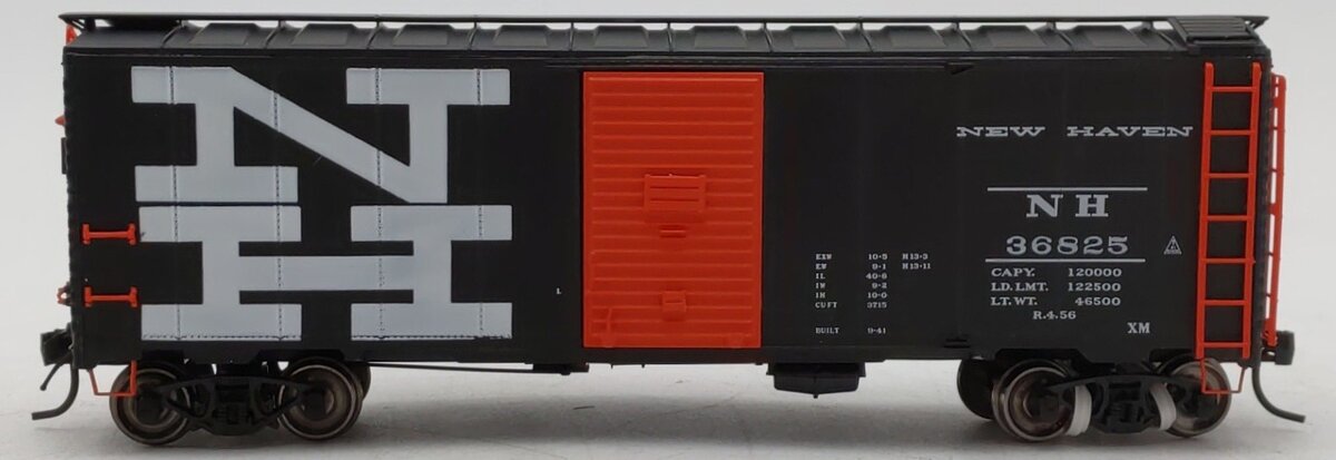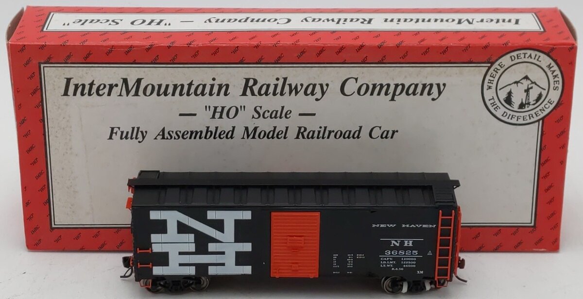 Here is a InterMountain 36825 HO Scale New Haven Boxcar #36825. This car features plastic construction, plastic trucks, metal wheels and axles, and knuckle couplers.