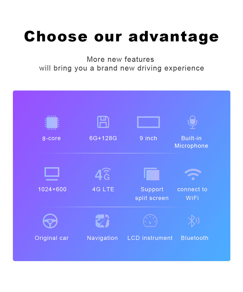 1. Be compatible with cars with original screen 2.0/4.3/6.5/7.0/8.0/8.4 inch.