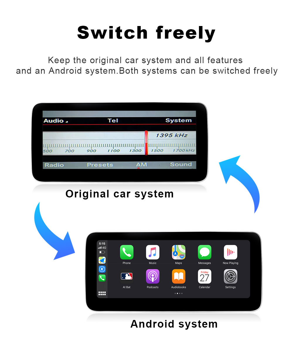Factory radio screen update into Intelligence Car Multimedia System, only exchange your original car TFT monitor, keep all the factory functions, maintain your original Car Radio and Amplifier function. Only one screen,no external Box, easy to install,plug and play.