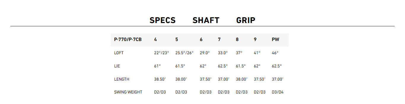 The P·770 4, 5, 6 and 7-irons feature FLTD CG which promotes high launch, while mass optimization and an updated tungsten weight provide an added layer of forgiveness. These modern players irons give you control and precision without sacrificing any performance benefits.