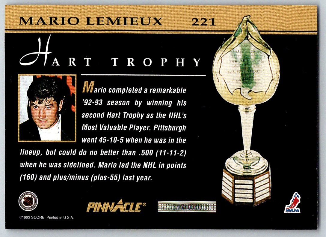 | 1993-94 Pinnacle MARIO LEMIEUX #221 Pittsburgh Penguins Hart Trophy HOF | ||||||||||||||||||