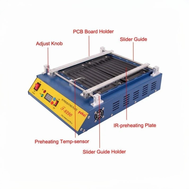 PUHUI T-8280 PCB Preheater IR Infrared Preheating Station Preheat Plate SMD Rework Station 0-450 Degree Celsius Solder Repair 110V/220V