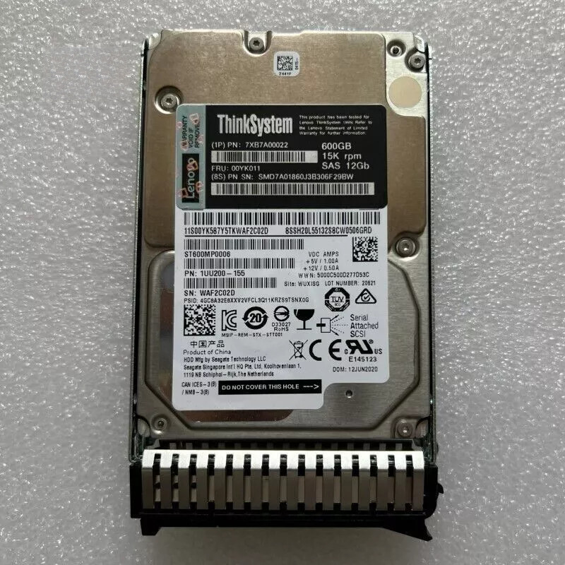 LENOVO 600GB 7XB7A00022 2.5" 15K 12Gb SAS Hot Swap 512n HDD 00YK011 Hard Drive
