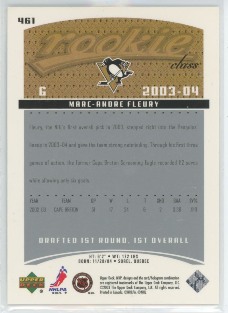 | 2003-04 Upper Deck MVP Marc-Andre Fleury Pittsburgh Penguins #461 |