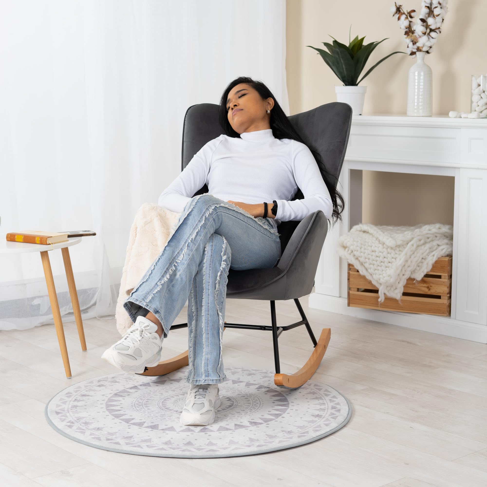 ERGONOMICO: Lo schienale alto 65 cm è sufficiente dritto per sostenere la testa, rendendolo perfetto per la mamma per calmare il suo bambino mentre dorme e offrendo un comfort eccellente. Puoi posizionare questa sedia per l'allattamento davanti alla stanza del bambino o al soggiorno per fare un pisolino, leggere o bere un caffè e goderti la vista. Questa poltrona a dondolo ti offre una sensazione di benessere unica.