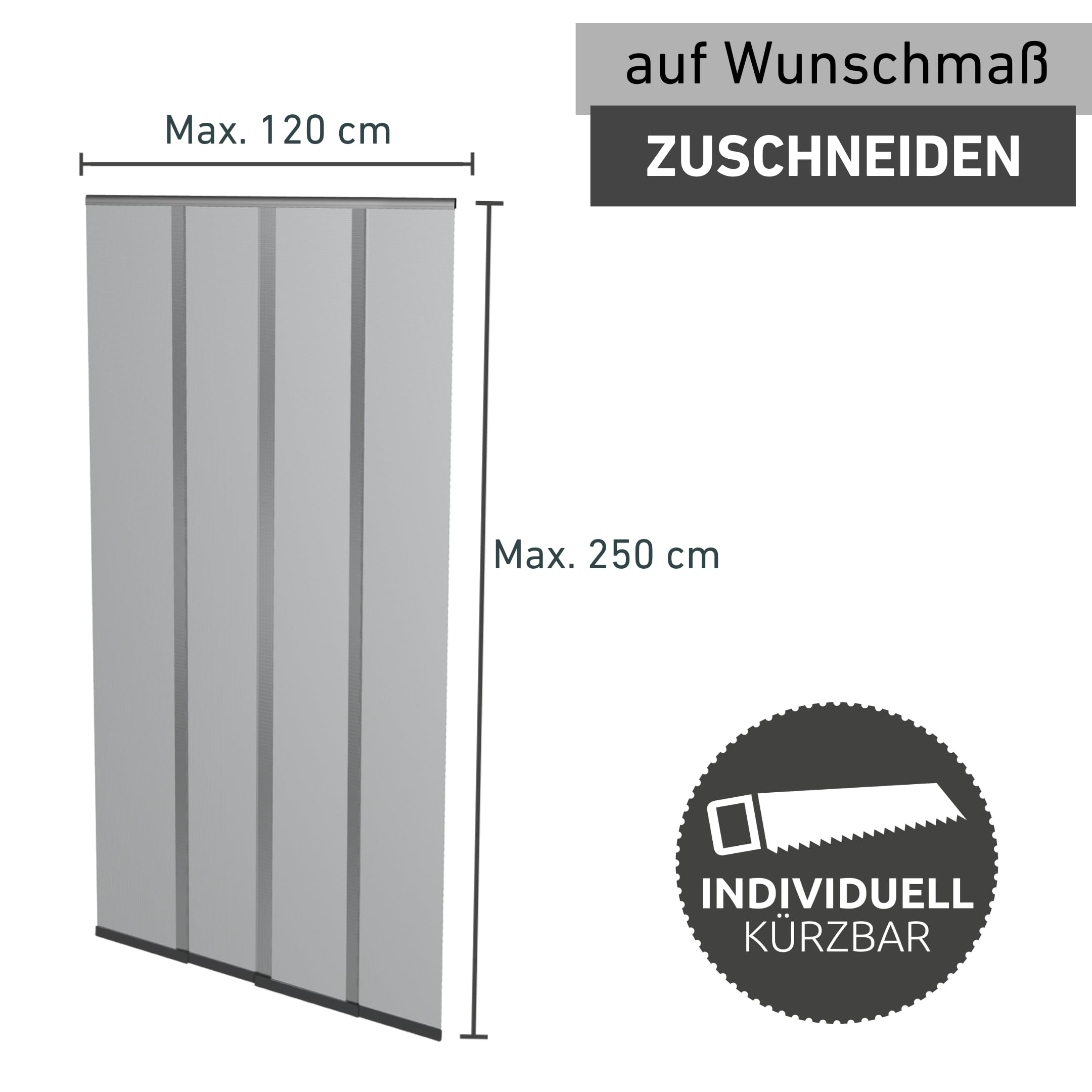 Lamellenvorhang aus vier ueberlappenden Fiberglasbahnen