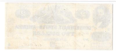 Always popular $2 note, and this one is a beauty! Clean and bright with sharp printing and light folds, fully framed and Exceptional Paper Quality, it has the appearance of a much higher grade. Fricke notes in his guide, that well cut T-42s are rare and command a premium. If you are looking for a pretty one of these, this is it.