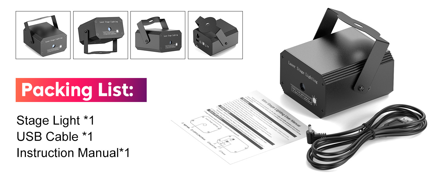 2. This laser light is for indoor use only; it should be prevented from water, humidity and shaking.