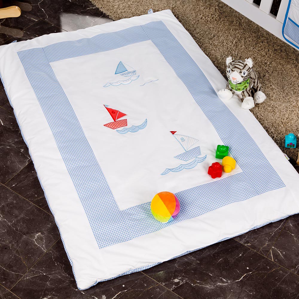Die Krabbeldecke Blue Marine mit dem super schönen Motiv der Schiffe, ist vielseitig einsetzbar und ideal zum toben, krabbeln, spielen und kuscheln.