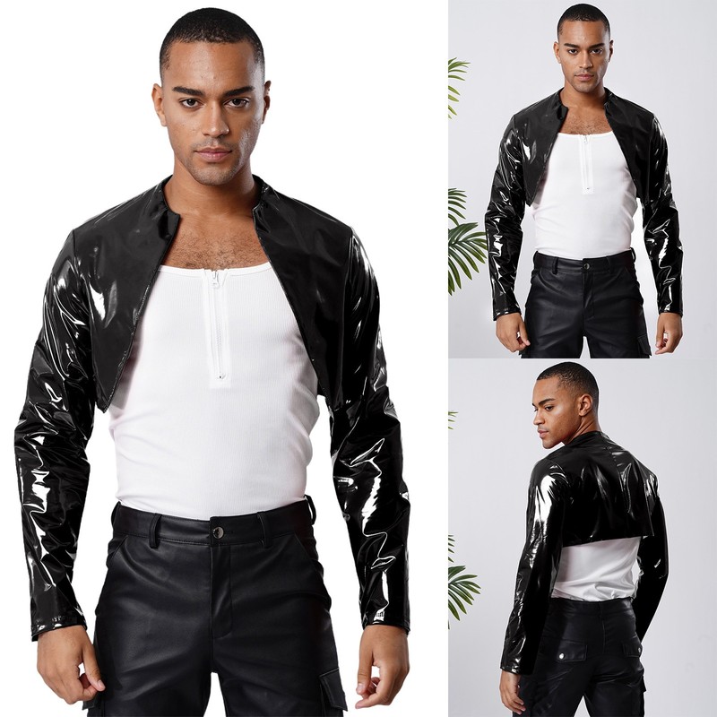 Mens Top Holiday Crop Top Casual Jacket Party Clubwear Christmas Shirts Shiny