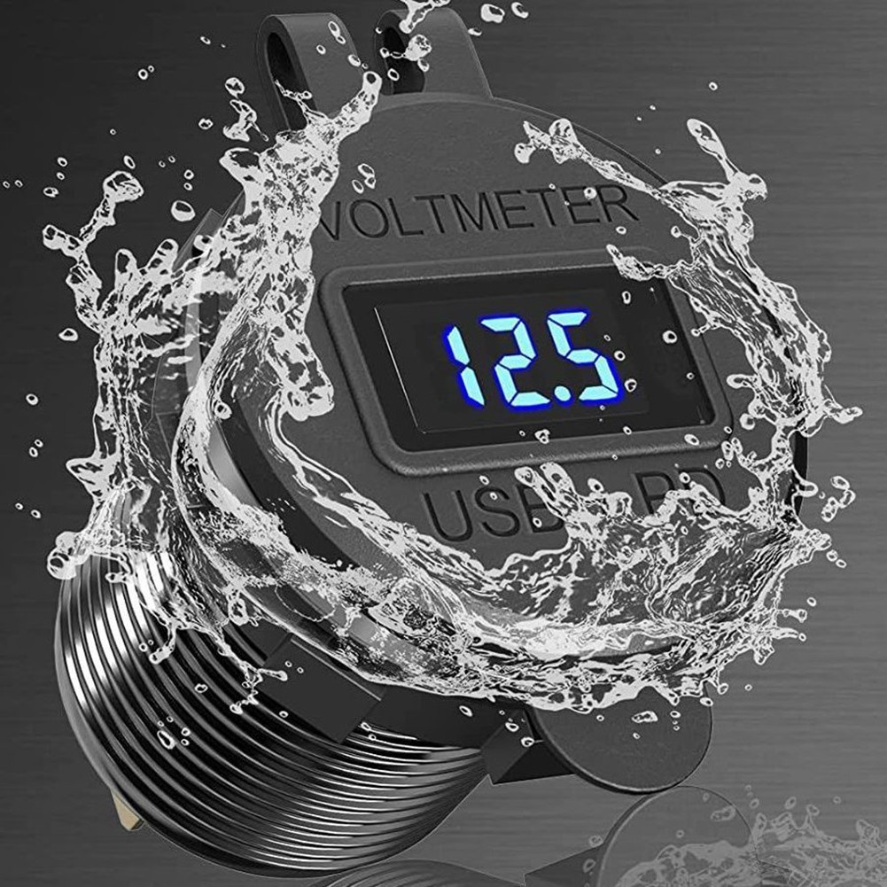 *Newest 12V USB Outlet:The 12v usb charger features a 20w pd usb c port, double 18w for QC3.0 usb charger, a digital voltmeter display and a button switch