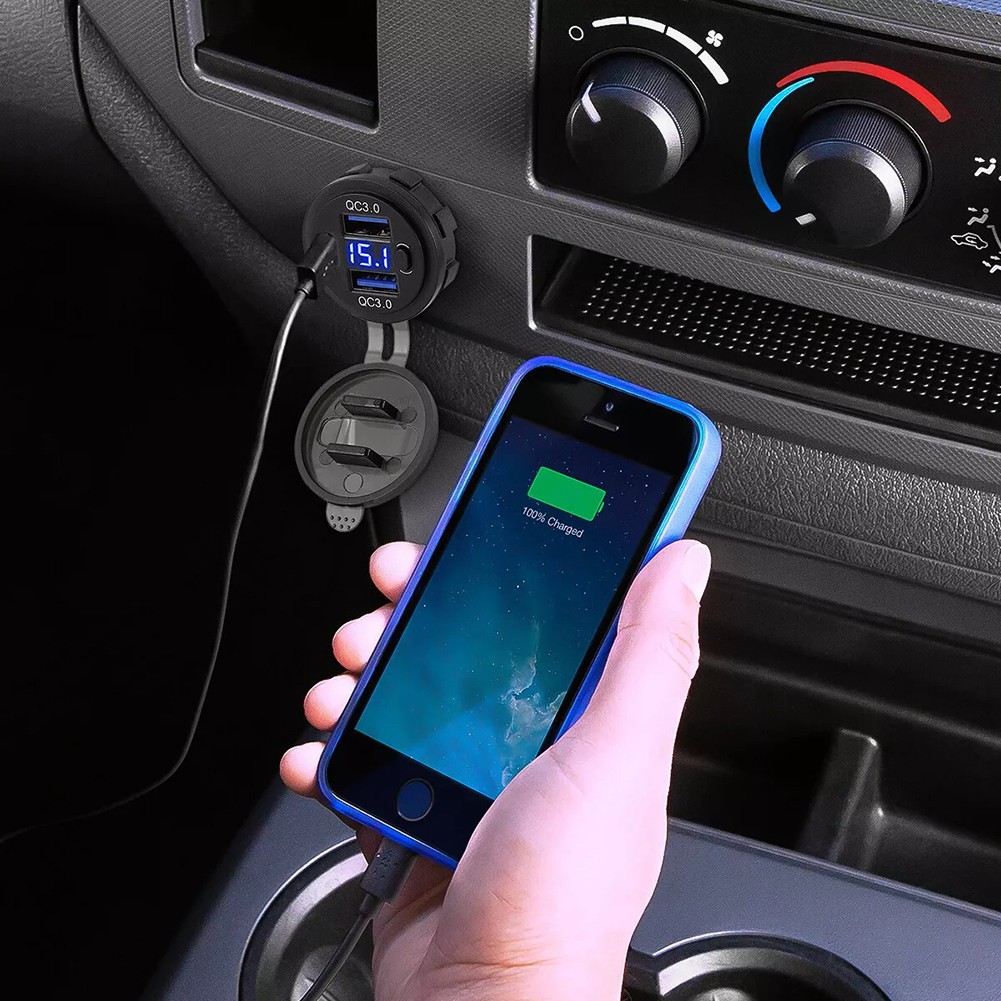 *Double for QC3.0 Ports:The 12v usb outlet equips with 2 quick charge usb ports, simultaneously charge 2 devices. Total output 36W, 4x faster charging speed for compatible devices