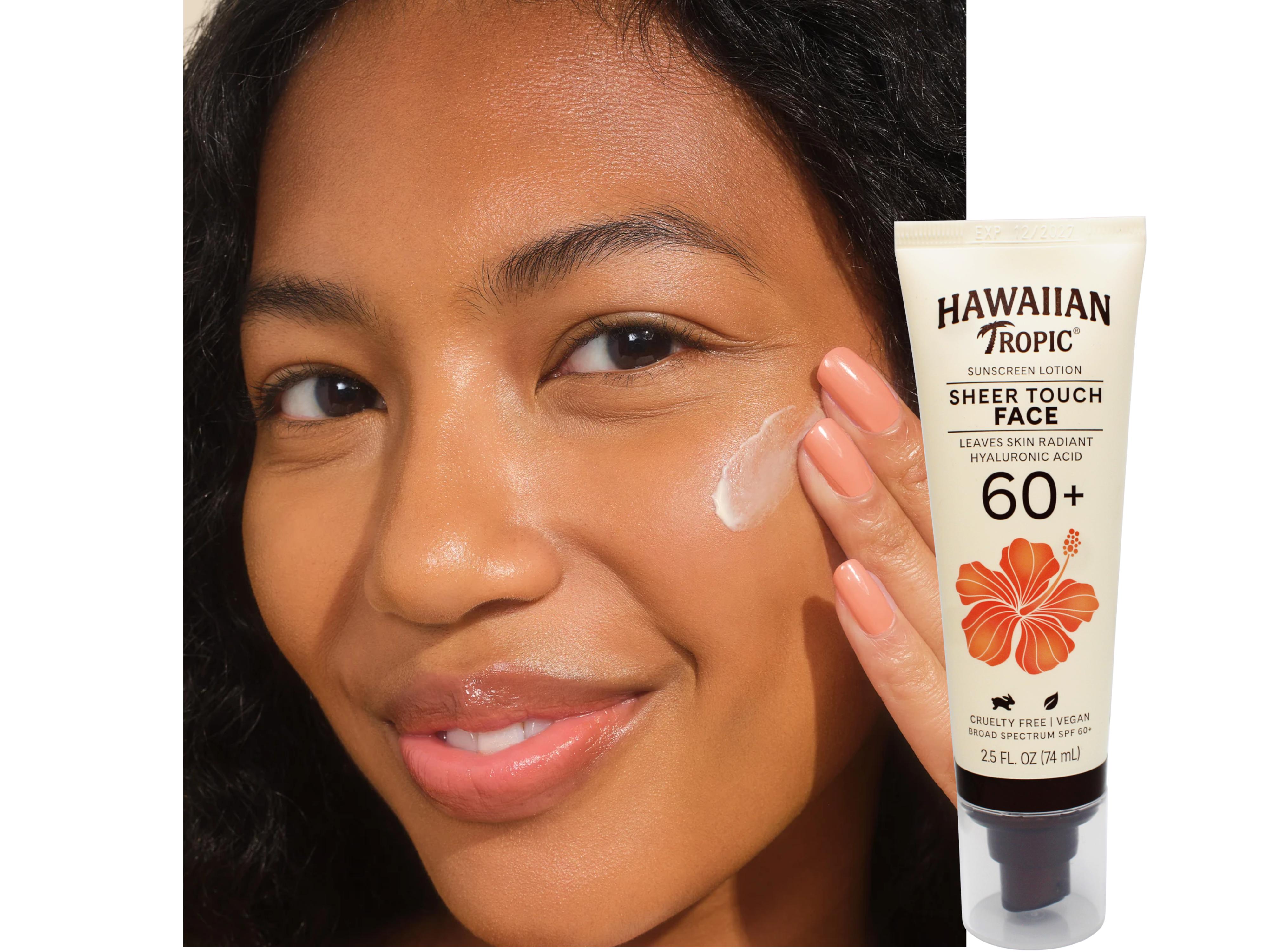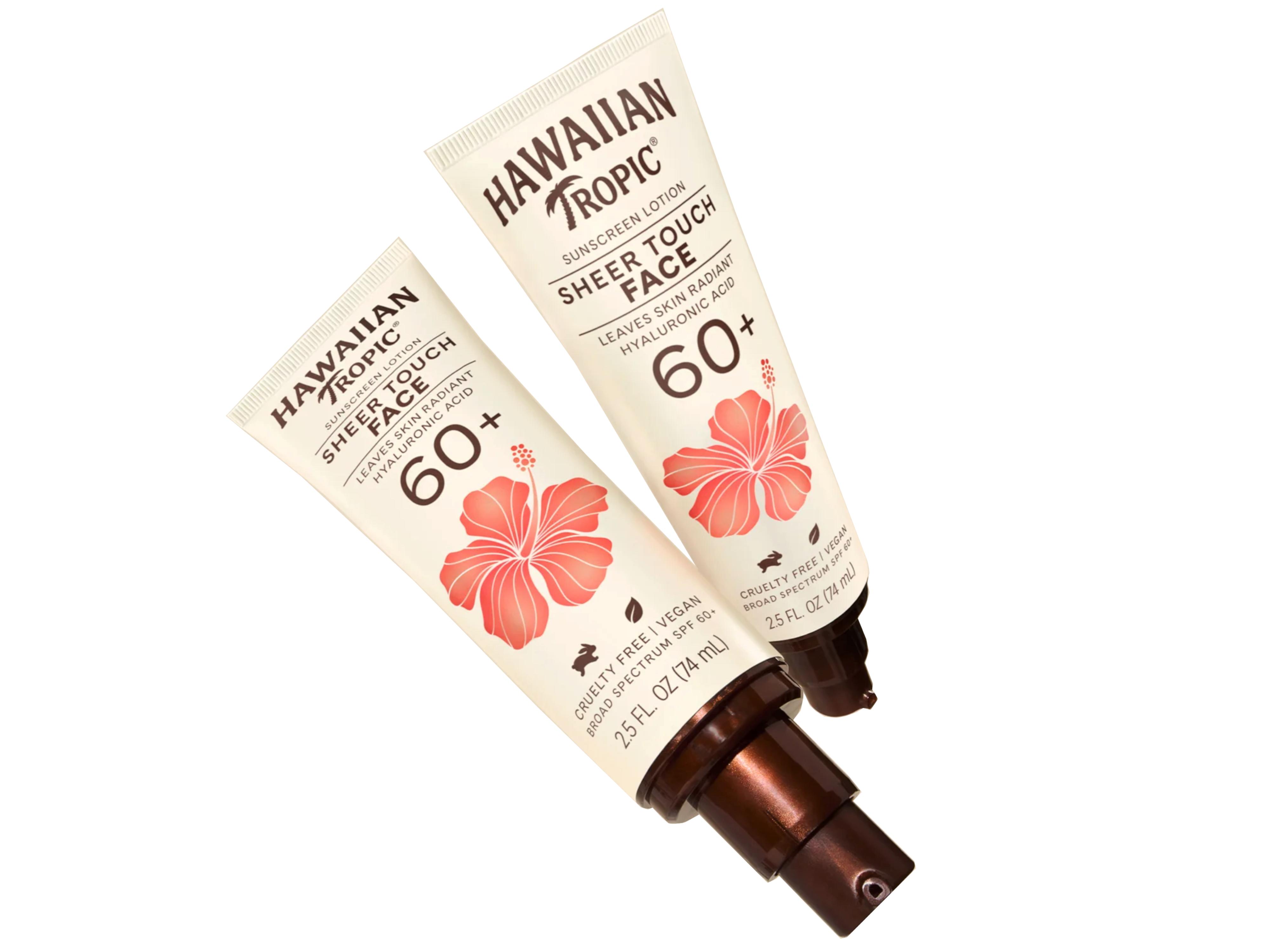 Protect and pamper your skin with Hawaiian Tropic Sheer Touch Face Sunscreen Lotion SPF 60. Specially formulated for facial use, this lightweight, non-greasy sunscreen offers broad-spectrum UVA/UVB protection while nourishing your skin with a tropical blend of antioxidants and moisturizing ingredients. The sheer, breathable formula absorbs quickly without clogging pores, making it ideal for daily wear under makeup or on its own. With its signature Hawaiian Tropic scent and high-level sun protection, it’s the perfect combination of skincare and suncare in one. Bullet Points: Broad-Spectrum SPF 60: High-level UVA/UVB protection to help prevent sunburn and premature aging. Sheer, Lightweight Formula: Designed for daily facial use—non-greasy and fast-absorbing. Moisturizing & Antioxidant-Enriched: Hydrates skin while helping to fight free radicals. Won’t Clog Pores: Breathable, non-comedogenic formula ideal for all skin types. Tropical Fragrance: Signature Hawaiian Tropic scent leaves skin feeling fresh and beach-ready. 2.5 FL OZ Size: TSA-friendly and perfect for on-the-go sun protection. Dermatologist-Tested: Safe and gentle for everyday facial care and sun defense.