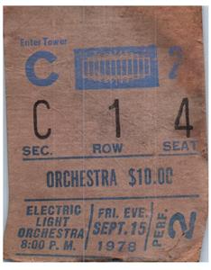 Vintage Electric Light Orchestra Ticket Stub 15 septembre 1978 MSG New York