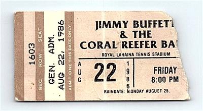 Jimmy Buffett Concern Ticket Stub 22 août 1986 Lahaina Hawaii