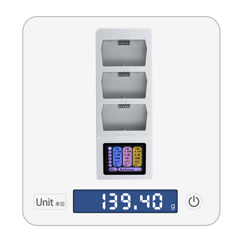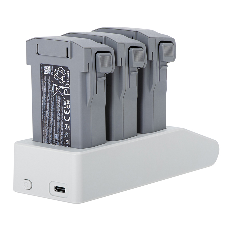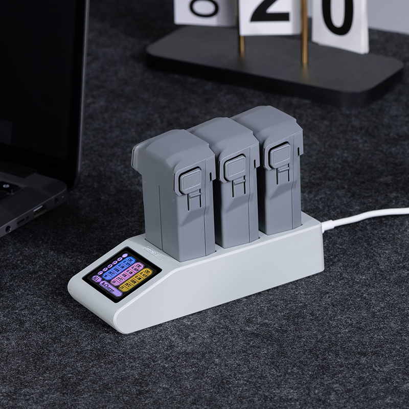 3. Designed with three battery slots, eliminating the hassle of repeatedly plugging and unplugging multiple batteries. This hub can charge three batteries sequentially at once. It automatically detects and prioritizes charging batteries with lower power levels, enabling quick replacement with fully charged batteries. A single 4680mAh battery takes approximately 45 minutes to fully charge (Long-endurance battery: 45 minutes; Short-endurance battery: 40 minutes).