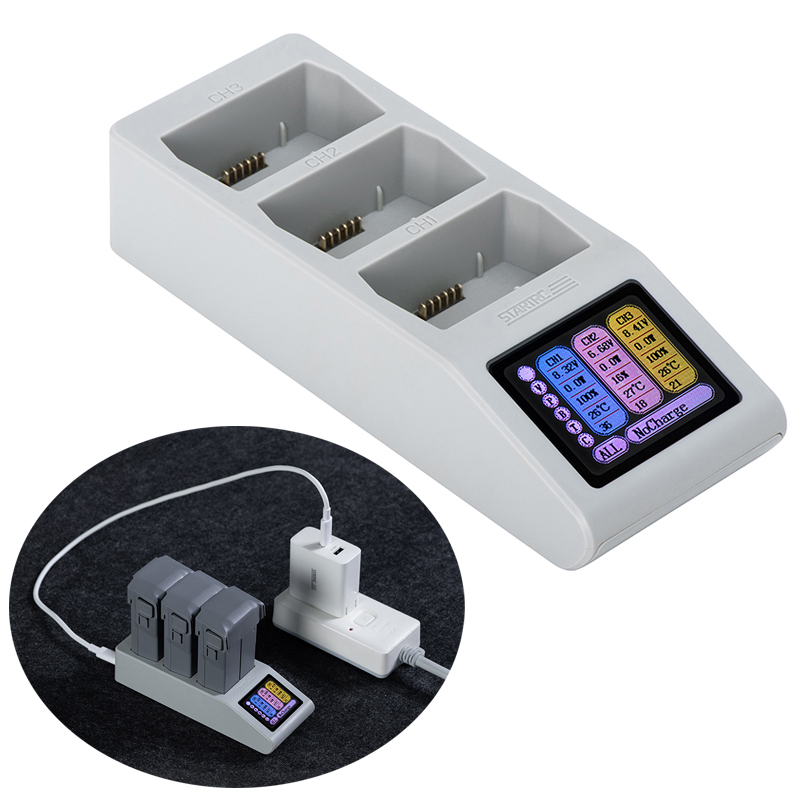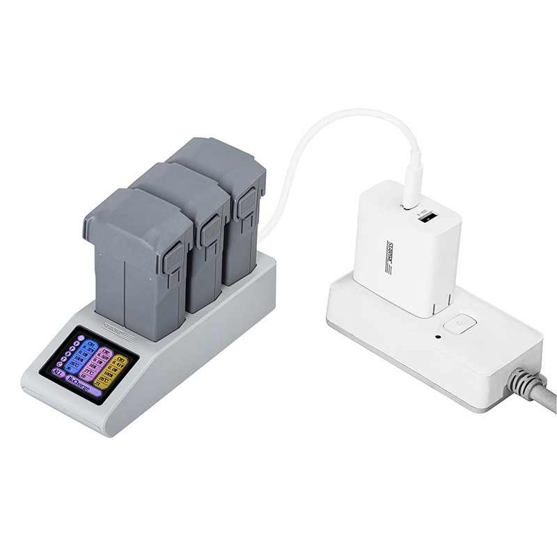 1. Designed specifically for DJI MINI series batteries, this charging station with display is recommended for use with the DJI 65W USB-C charger or other chargers supporting the USB PD fast charging protocol. Includes one USB C-C data cable.
