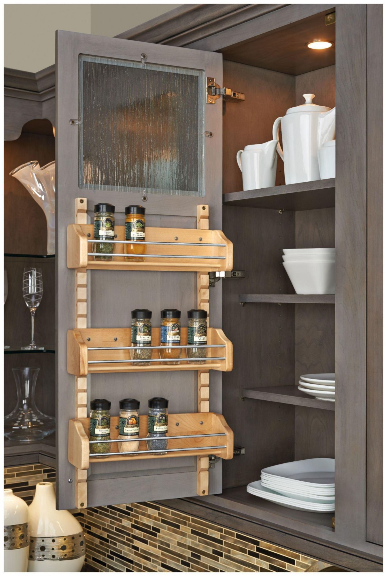 Item DescriptionRev-A-Shelf helps to maintain shelf space and keep spices within reach with this adjustable wood door mounted spice rack. Includes three (3) bins and are adjustable to any position so they don't interfere with your cabinet shelves. Easy to install and can be configured in any position as your spices change.