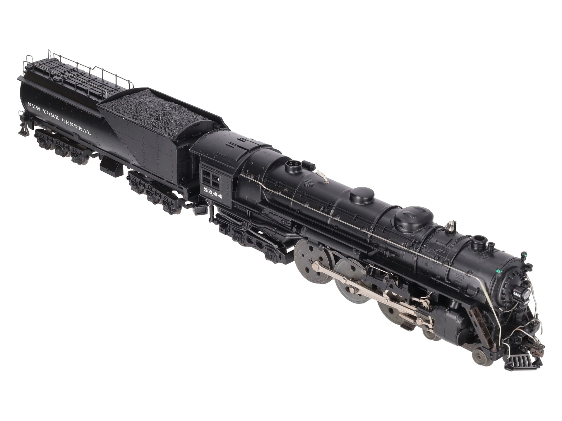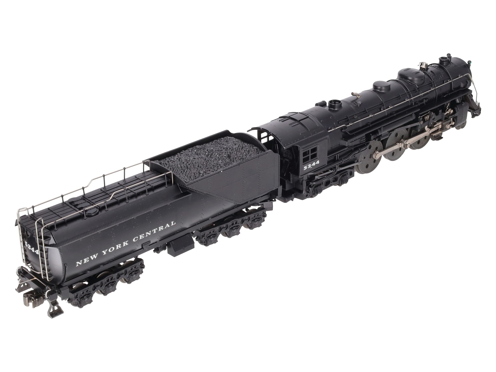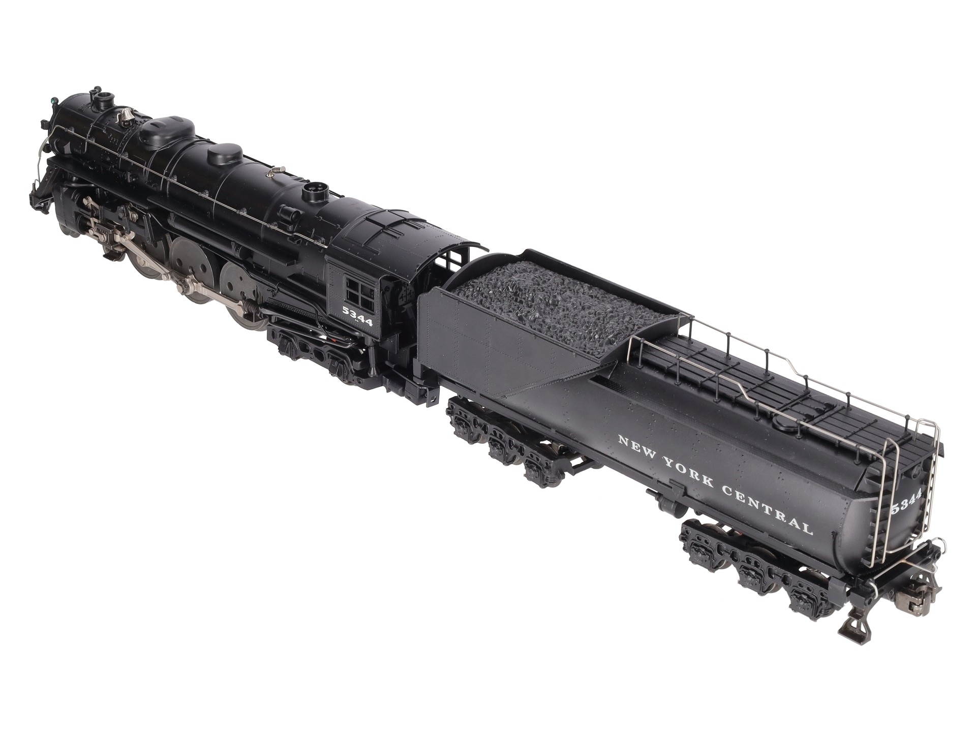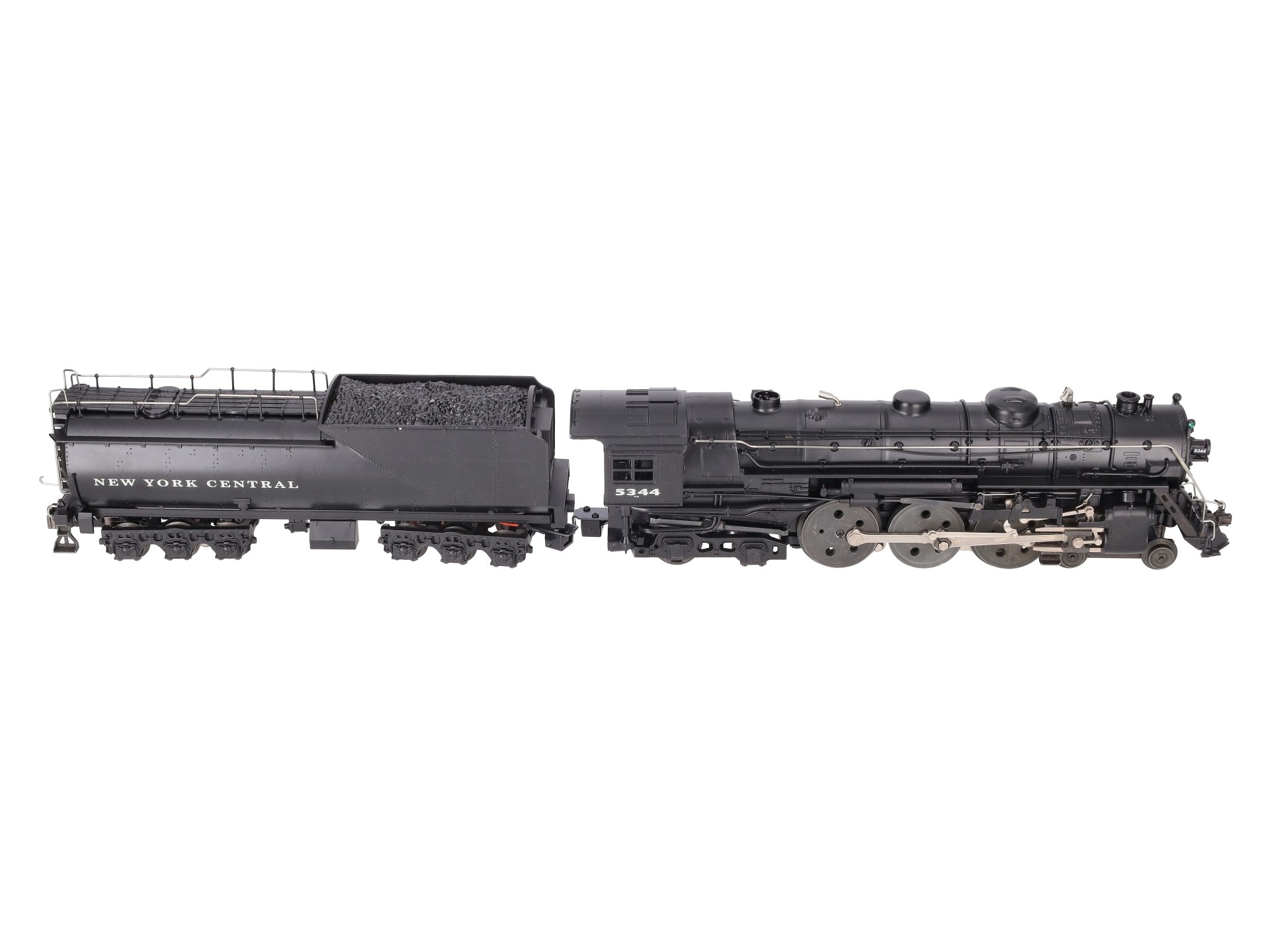 Here is a Lionel 6-18056 O New York Central 763E J1E 4-6-4 Hudson Steam Locomotive & Vanderbilt Tender from 1997. The die-cast Locomotive features a Pullmor motor, operating headlight, smoke unit, magne-traction, wireless tether, detailed cab interior, metal handrails, firebox glow, directional lighting and is command equipped. The Tender is die-cast metal as well and features RailSounds 2.5, die-cast metal trucks, a rear electrocoupler, metal wheels and axles.