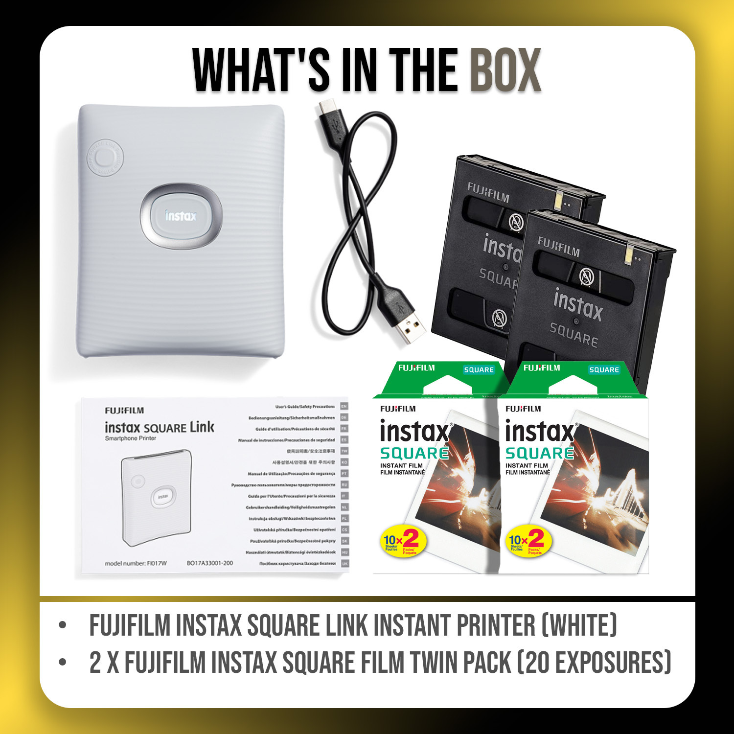 INSTAX SQUARE prints, and so much more. The INSTAX SQUARE LINK Smartphone Printer in Ash White or Midnight Green is small and lightweight. Because your best moments in life deserve to be showered with endless creative possibilities and have the chance to burst free from their “Frame”.