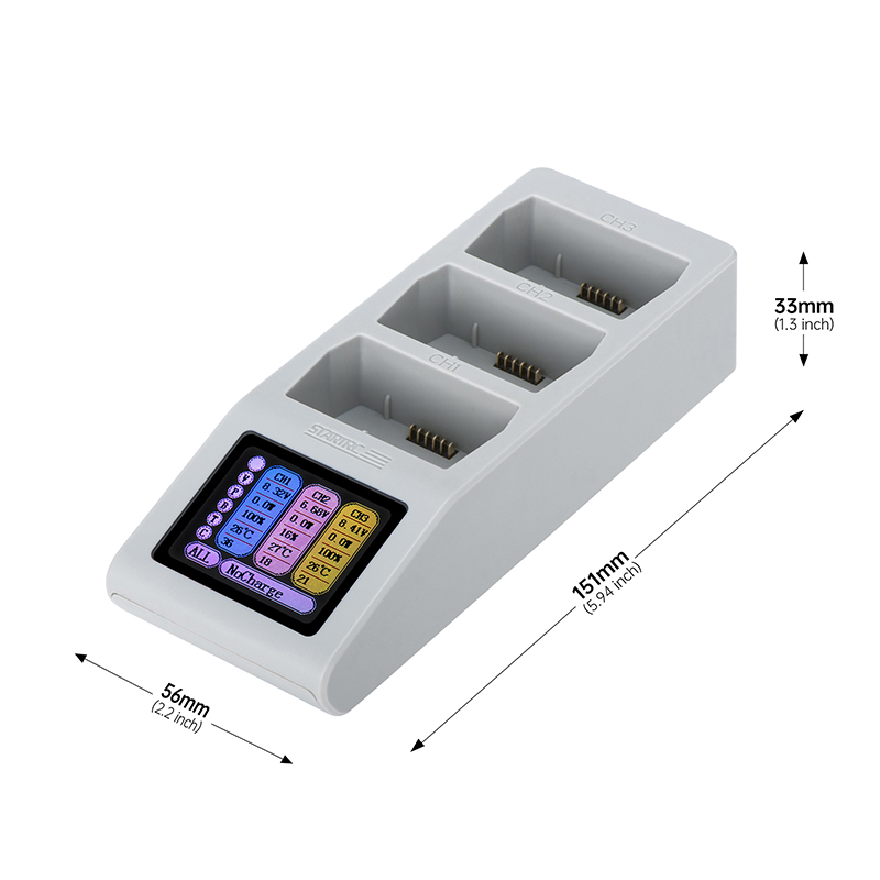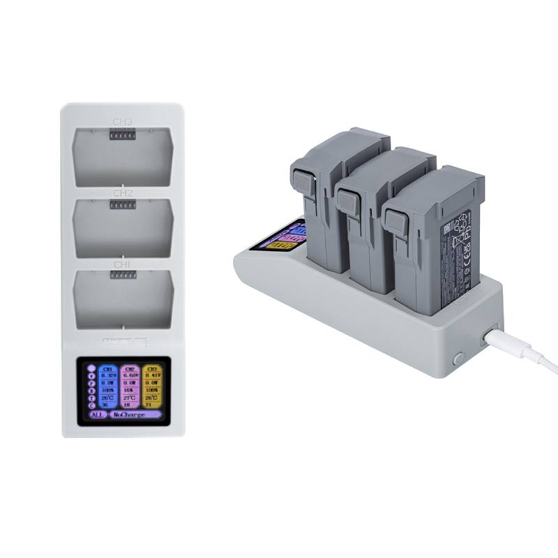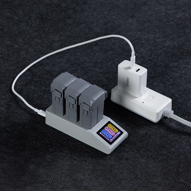 1. Designed specifically for DJI MINI series batteries, this charging station with display is recommended for use with the DJI 65W USB-C charger or other chargers supporting the USB PD fast charging protocol. Includes one USB C-C data cable.