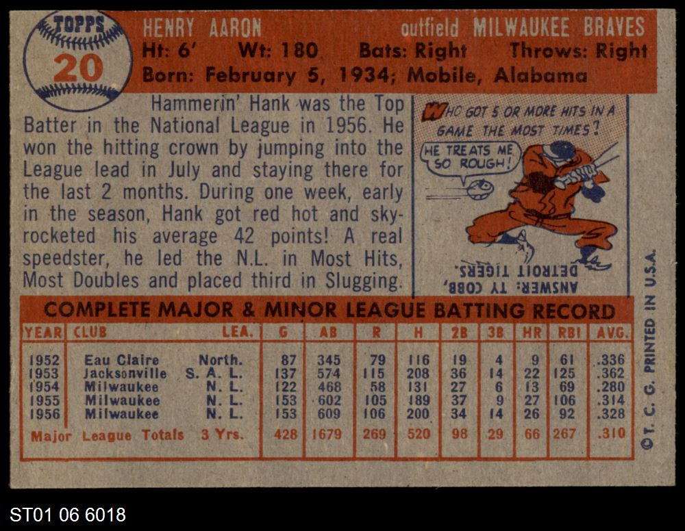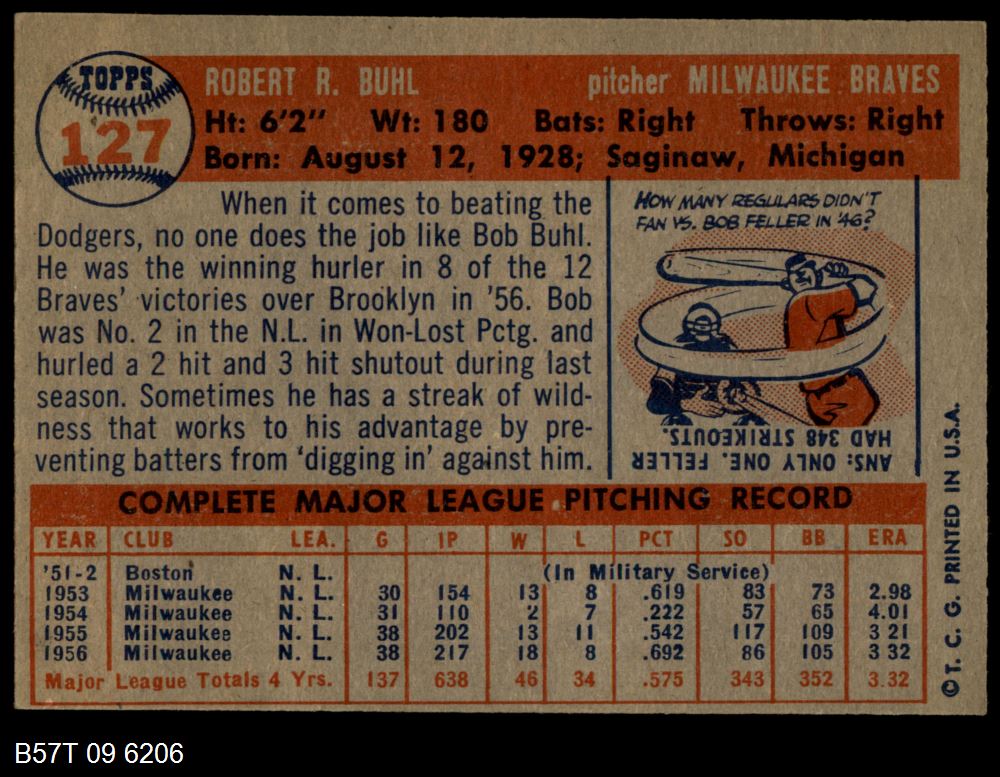 This 1957 Topps Milwaukee Braves Team Set contains the 1957 Topps Braves baseball cards and makes a great gift for any Braves fan. ?With an inventory of over 20,000 team sets, Dean's Cards has Team Sets & Near Team Sets for just about every team, in multiple conditions, for all sports, for most major sets issued between 1909 and 1979.