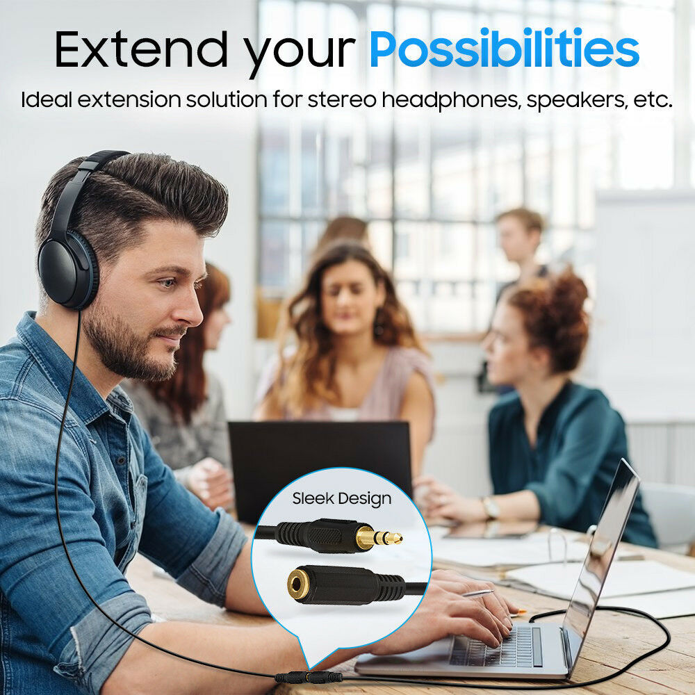 3.5mm 1/8" Stereo Audio Aux Headphone Cable Extension Cord Male to Female