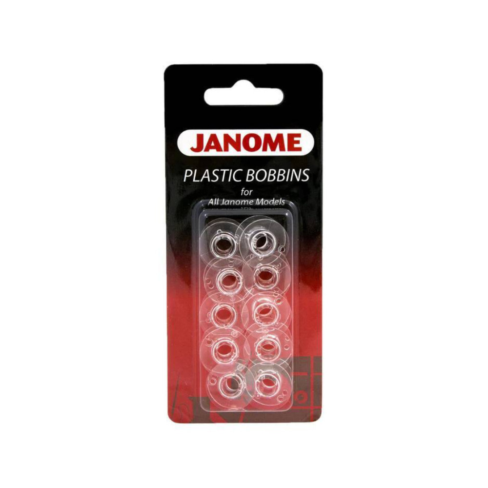 Keep your stitches consistent and your sewing machine running smoothly with the Janome 10-Pack Genuine Plastic Bobbins. Specially designed for use with all Janome models—whether top-loading or front-loading—these bobbins ensure smooth thread delivery and reliable stitch performance.