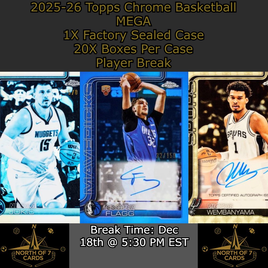 watch our Breaks on YT and X - Northof7cards BY BIDDING YOU AGREE THAT YOU HAVE READ AND UNDERSTAND WHAT A BOX BREAK IS!