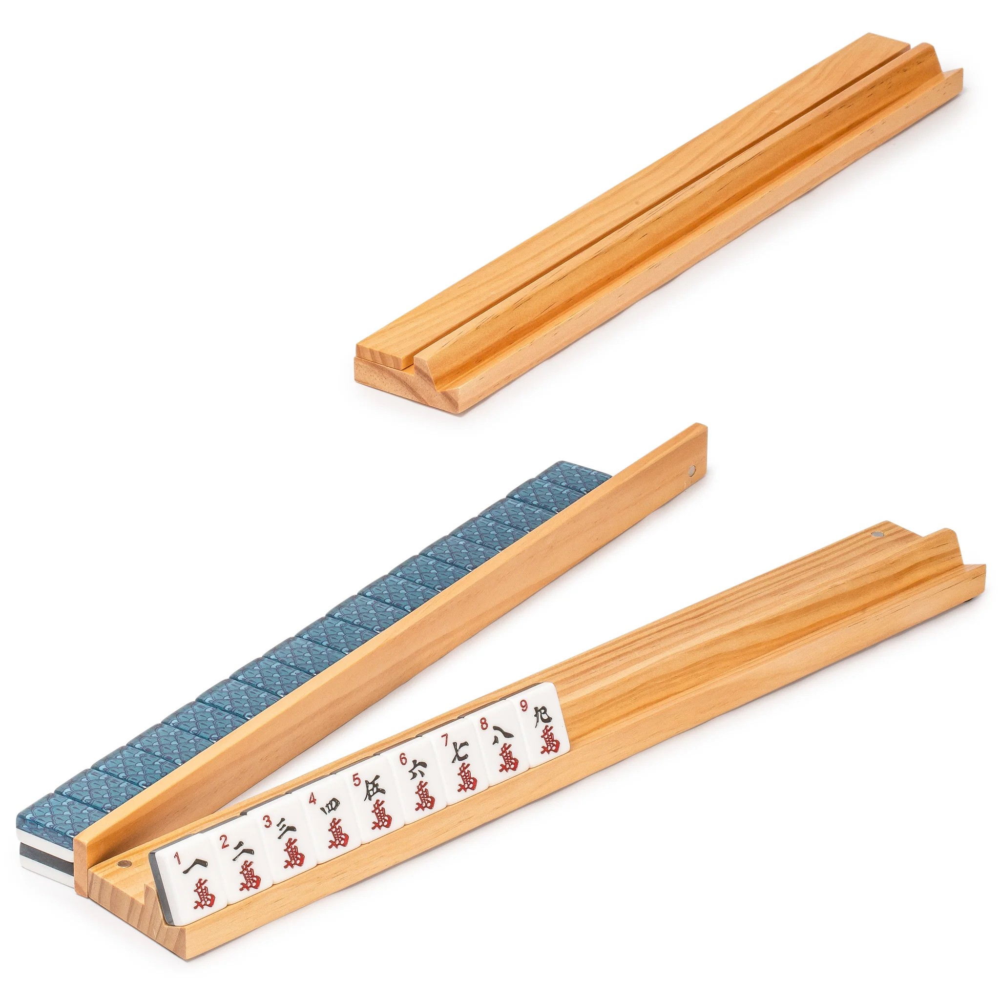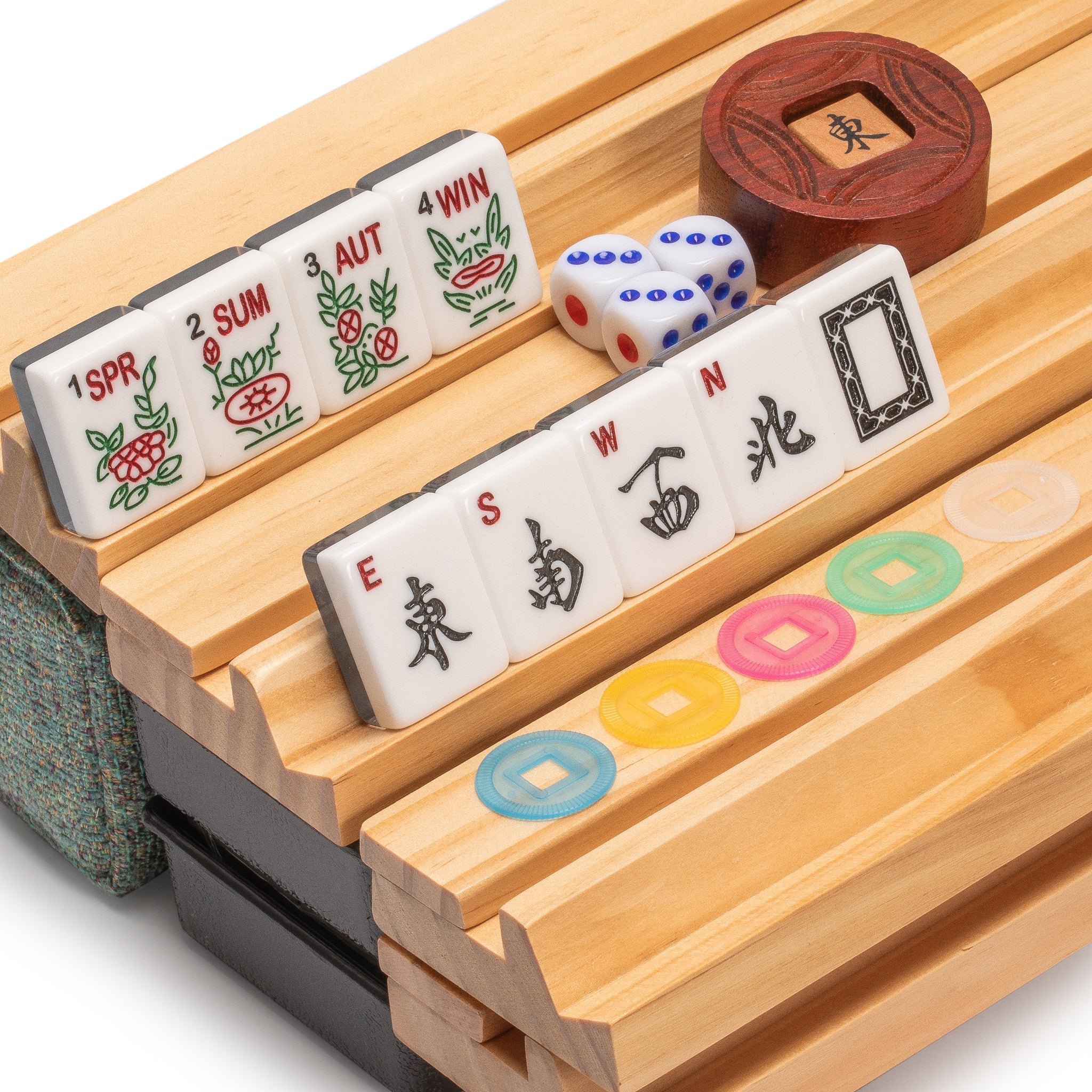 Complete Accessories: Includes 4 wooden racks with magnetic pushers, a wind indicator, pastel Wright Patterson scoring coins, 3 dice, and an instruction booklet. Pushers attach magnetically to the back of the rack for wall-building and to the top for compact storage. Rack size: 18.2 x 2.4 x 1" (46.2 x 6 x 2.5cm). Mahjong scorecards not included