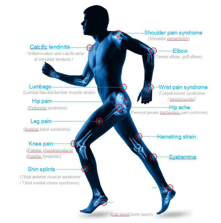 The principle is that the high intensity focused shock wave energy generated by the shock wave generator enters specific deep tissues through the skin surface, effectively stimulates the affected tissue and accelerates the growth of new blood vessels and blood circulation, and induces a new inflammatory process, thereby awakening the cell's self repair function. In addition, the effect of vaporization bubble burst generated by focused shock waves destroys the adhesion, scarring, contracture and blockage of the damaged tendon area, and even the calcified or fibrotic soft tissue, which is commonly known as loosening the injured part of the body, to stimulate the soft tissue to grow again, accelerate blood circulation and promote recovery. At the same time, high energy shock waves can stimulate pain nerve receptors