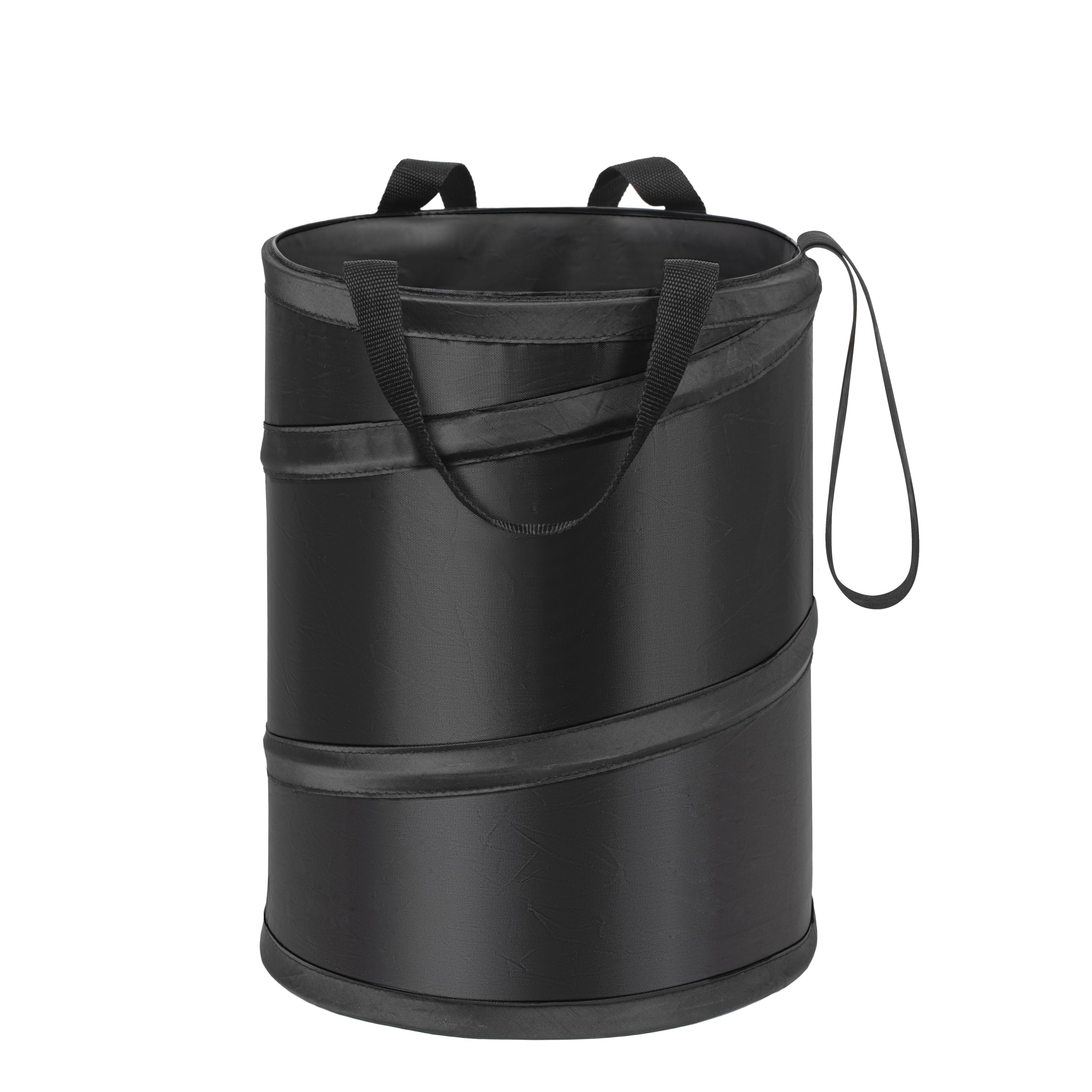 - POP-UP & COLLAPSIBLE DESIGN - Pop up trash can, can be folded down completely flat and has elastic band to keep it folded. It pops right up when you loosen the band, is incredibly convenient and easy storage.